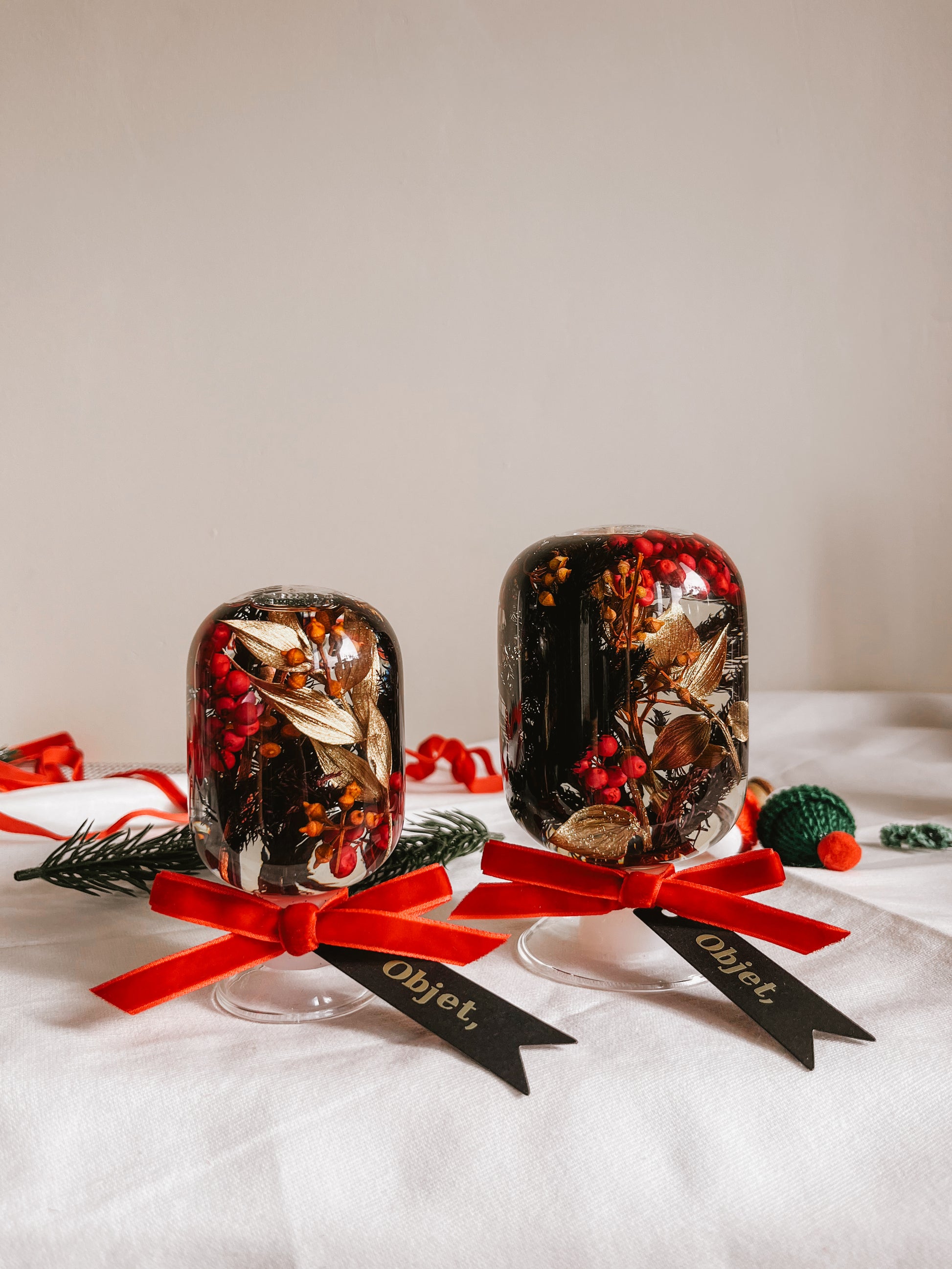 Yuletide Berries combines red pepperberries, delicate himmelsröschen, and golden ruscus, eucalyptus berries to create a piece full of winter splendor. The harmonious blend of red and gold evokes the charm of holiday decorations, reminiscent of a magical winter forest. Perfect as a Christmas gift, this piece encapsulates the warmth and beauty of the season, making it a cherished addition to any festive space.